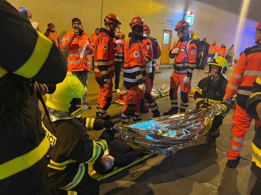 Usporiadatelia nás prepravili do tunela, v ktorom bola zastavená prevádzka a nasimulovaná nehoda 3 áut. V pohotovosti boli hasiči, policajti a záchranári.