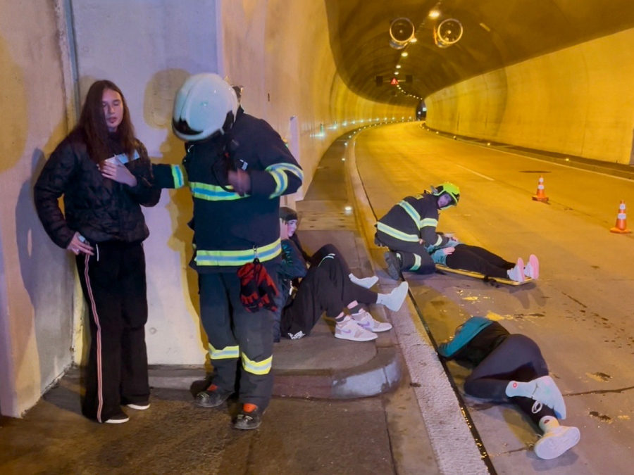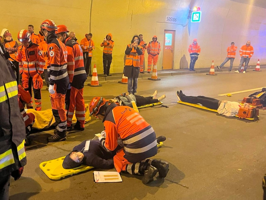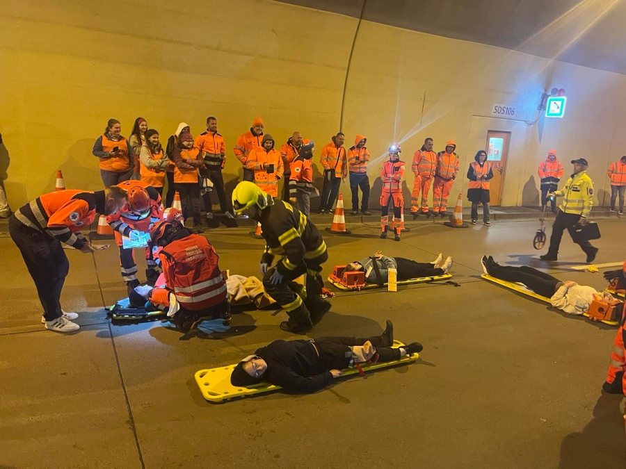 Usporiadatelia nás prepravili do tunela, v ktorom bola zastavená prevádzka a nasimulovaná nehoda 3 áut. V pohotovosti boli hasiči, policajti a záchranári.