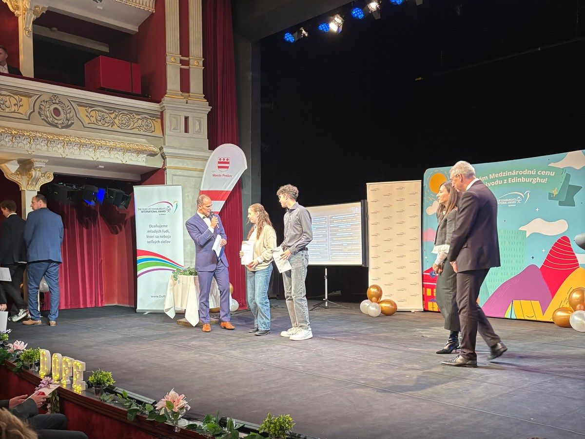 Dňa 1. októbra 2025 sa v Prešove uskutočnilo slávnostné udeľovanie cien v rámci medzinárodného programu DofE – Medzinárodná cena vojvodu z Edinburghu. Na tejto výnimočnej udalosti našu školu úspešne reprezentovali dvaja študenti z triedy 2.A – Pavol Bobko a Kristína Lenghartová, v sprievode pani učiteľky Janky Kokoruďovej.