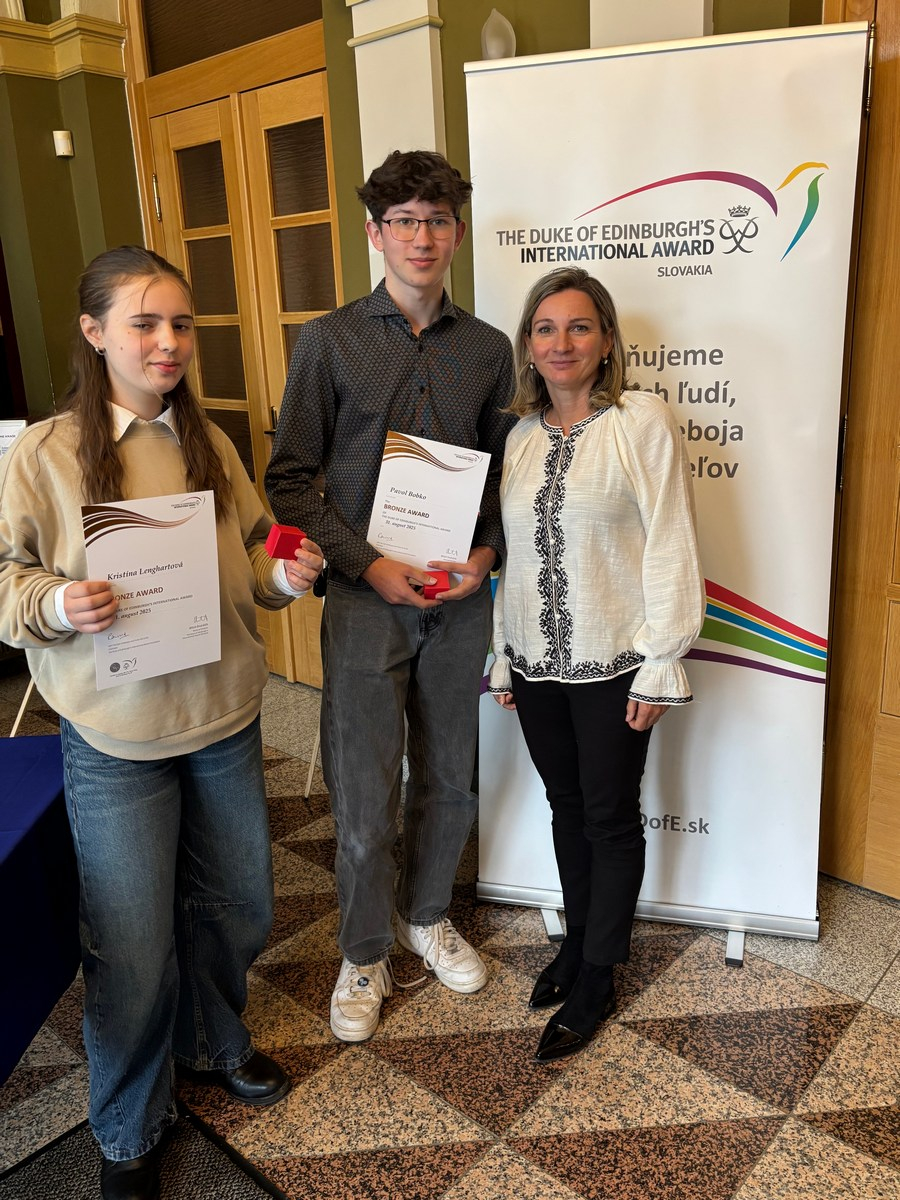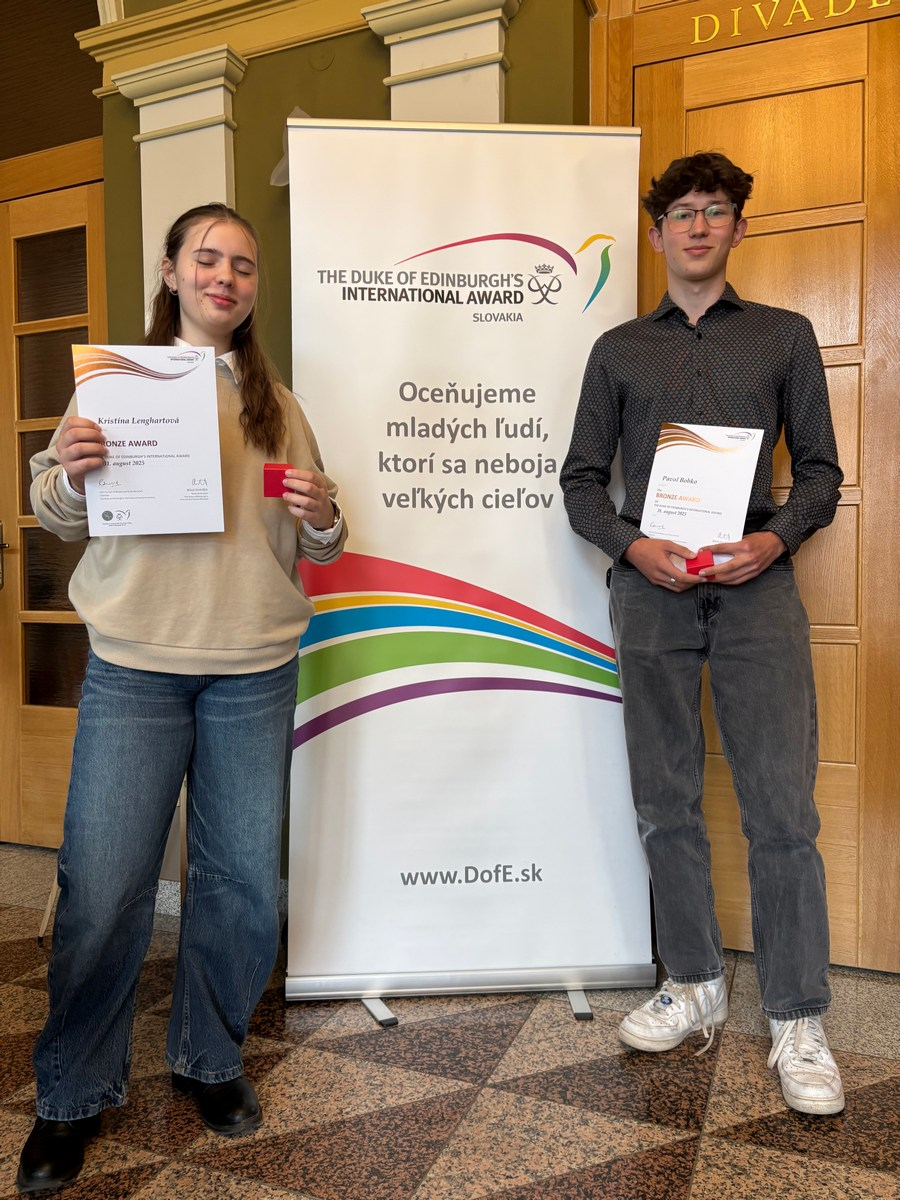 Dňa 1. októbra 2025 sa v Prešove uskutočnilo slávnostné udeľovanie cien v rámci medzinárodného programu DofE – Medzinárodná cena vojvodu z Edinburghu. Na tejto výnimočnej udalosti našu školu úspešne reprezentovali dvaja študenti z triedy 2.A – Pavol Bobko a Kristína Lenghartová, v sprievode pani učiteľky Janky Kokoruďovej.