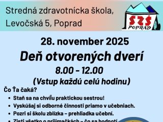 V zmysle § 150 ods. (5) zákona č. 245/2008 Z. z. (školský zákon) a vyhlášky č. 231/2009 o podrobnostiach a organizácii školského roka poskytujem žiakom Strednej zdravotníckej školy, Levočská 5, Poprad na deň 12.11.2025 riaditeľské voľno z prevádzkových dôvodov (plánované prerušenie dodávky pitnej vody).
